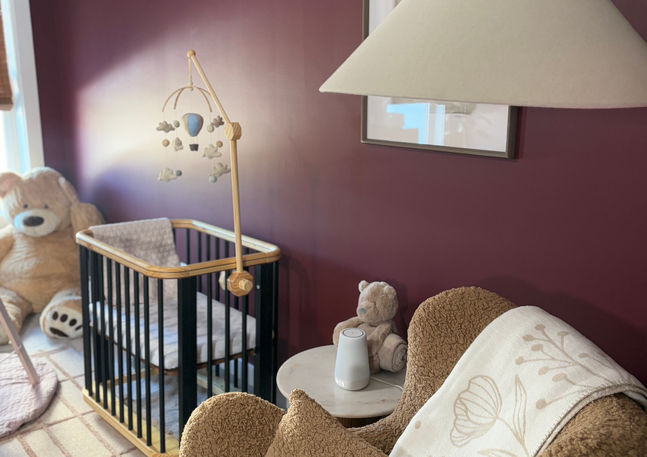 Harper’s Harmony is where function meets feeling. Anchored in deep wine tones, this nursery offers a rich, calming palette that wraps both baby and parents in comfort. With soft textures, layered lighting, and thoughtfully integrated smart tech, it’s a space designed for rest, connection, and those quiet early moments of new parenthood. From lullabies to late-night feeds, every detail is crafted with care—because harmony starts at home.